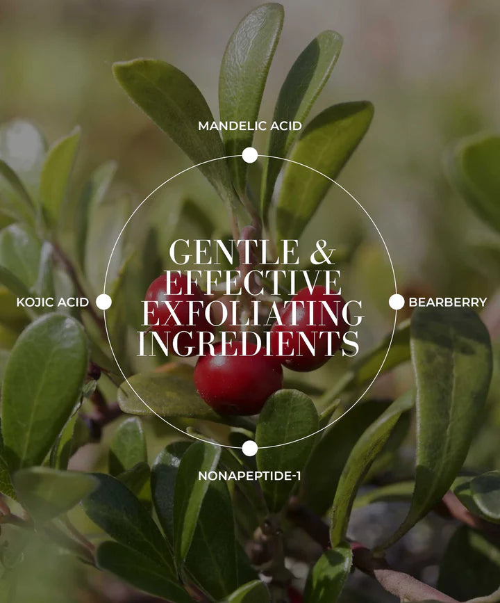Skin-perfecting, brightening and clearing serum drops quickly absorb into skin to gently exfoliate and resurface skin leaving it clear, smooth and glowing. Formulated with a gentle and effective exfoliating blend of 5% Mandelic Acid, Kojic Acid, and Hyaluronic Acid.